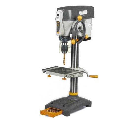 Сверлильный станок Optimum B160T Vario 3011716 оснащен системой бесступенчатой регулировки числа оборотов. Встроенный светильник - для комфортной работы. Станок оснащен кассетой для хранения сверл. Приводной ремень предотвращает потерю мощности и проскальзывание. Шлифовальные шкивы, изготовленные из алюминия, увеличивают плавность вращения шпинделя. Поверхность стола имеет точную геометрию - для эффективной и комфортной работы.