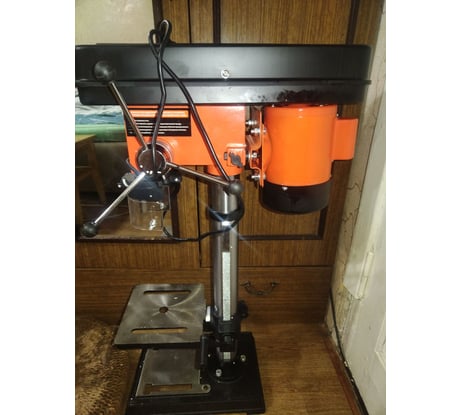 Станок понравился. Металл 6мм сверлом 13 сверлит спокойно, профтрубу 20х30 насквозь просверлил без смещения отверстий, ДСП пером на 32 просверлил легко. Для гаража то что нужно.