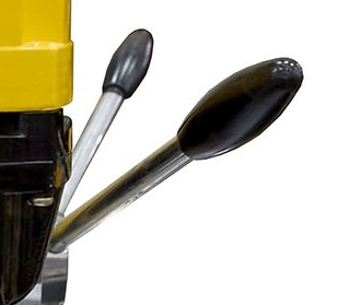 Удобство в работе Три рукояти с пластиковыми наконечниками для плавного опускания шпинделя обеспечивают надежный хват. |