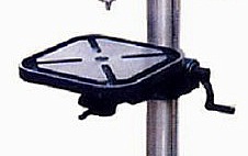 Регулируемый рабочий стол С помощью поворотной цапфы, а также за счет вращения ручки через червячную передачу рабочий стол станка можно устанавливать в любом требуемом для оператора положении - вертикальное перемещение по кронштейну, поворот на 3600 в горизонтальной плоскости и на ±450 относительно поверхности стола. |