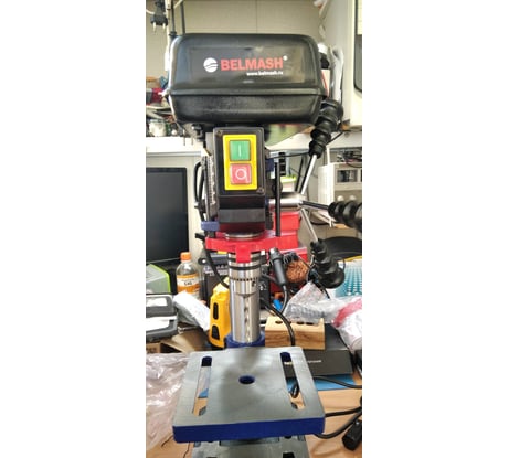 Купил два года назад. За это время использовал довольно часто для сверления всяких гаражно-дачных поделок, по большей части из сталей вроде Ст3 или 09Г2С. Никаких проблем со станком не возникало. Для больших отверстий использовал ступенчатые свёрла, поэтому в мощности станка недостатка не испытывал. Сразу докупил крестовые тиски (оказались очень полезной вещью, значительно убыстряющей процесс сверления) под них поменял опорную трубу станка на более длинную (60 см) и более толстостенную (от 3 мм). 1 метр стандартной трубы просто заказал в популярном интернет-магазине. Подошла идеально и по диаметру и гладкости поверхности - старую выбил из фланца, новую забил. Кстати, многие жалуются на малую жёсткость штатной трубы, но по мне, не меньшую податливость имеет столик и его крепление. Поэтому снизу под него установил невысокий винтовой домкрат. Это существенно повысило жёсткость, а также позволило относительно легко поднимать-опускать столик с тисками (они весьма тяжёлые) и заготовкой. Купил резец и попробовал использовать станок с тисками как токарный. Немного получилось проточить, но не очень (патрон станка, стоя на конусе, держится только на трении). В принципе, если установить на трубу что-то вроде люнета для разгрузки патрона и использовать очень малую подачу, то что-то простое, наверно, можно точить. Станок за свою цену (9352р в 2023г) неплохой и стоящий. С ручным сверлением не по точности, не по удобству не сравнить.