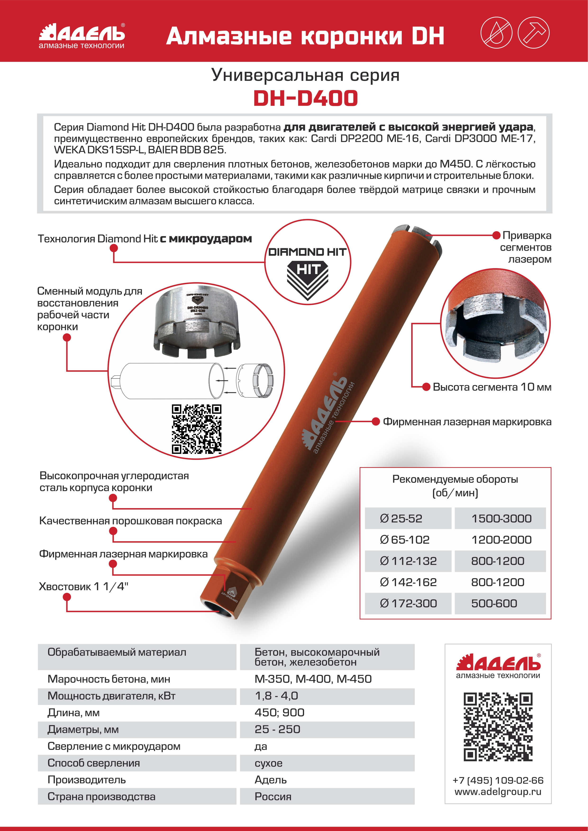 Вопросы и ответы об алмазном сверле Адель DH-D400 32х450 мм; 1 1/4; 4 сегмента ДУУ00005853