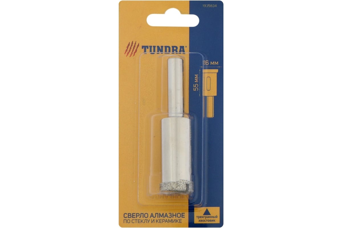 Сверло алмазное по стеклу и керамике (16х65 мм; трехгранный хвостовик) ТУНДРА 1935834
