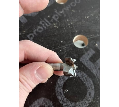 Сверлил фанеру 18мм через кондуктор, оторвало угол режущего ножана на 26 отверстии. За свою цену пойдет. Думал на 2 столешницы хватит...