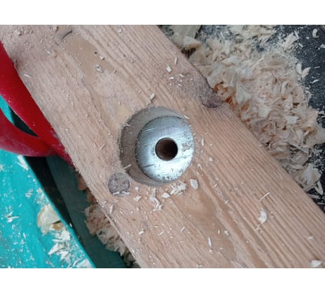 Сверлится очень легко несмотря на сравнительно большой диаметр, пробовал и на станке, и дрелью. Биения (по ощущениям) нет. Стружка (сверлил сосновую плаху 50 мм почти насквозь) вылетает бодро, налипания на режущие кромки почти нет. Отверстия получаются все одинаковые - ровно 46 мм, стенки ровные, вырывания волокон нет совсем.