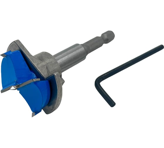 Сверло имеет центральный шип для центровки отверстия и ограничитель для регулировки заглубления сверла (шкала от 12.5 до 40мм, шаг 2.5мм), зубцы сверла выполнены из твердого сплава (Карбид-Вольфрам)