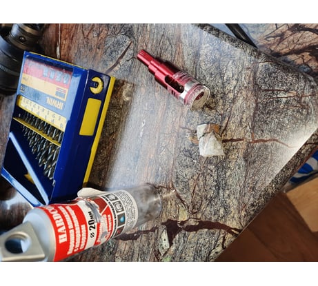 Нужно было просверлить отверстие в каменной столешнице из амфиболита толщиной 3 см. Взял с небольшой надеждой.. Просверлил за 10 мин не спеша. Не ожидал. Обычный гранит сверлит отлично