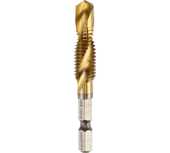 Сверло-метчик KRANZ предназначено для создания резьбы диаметром М10 в различных материалах: металле, пластике, дереве. Сверло изготовлено из быстрорежущей стали P6M5, поэтому отличается высокой надежностью. Технология производства гарантирует максимальную точность резьбы согласно стандартам DIN, что обеспечивает идеальную совместимость с метизами. Титановое покрытие увеличивает стойкость к нагреву и защищает от коррозии, что особенно важно при длительных и интенсивных работах.