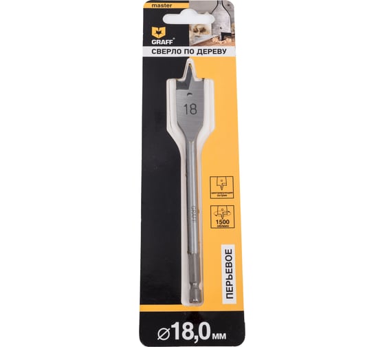 Сверло перьевое (перовое) по дереву 18x150 мм в блистере GRAFF 8818150