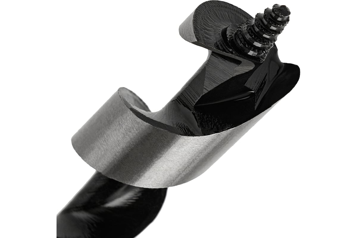 Резьбовой центрирующий наконечник сверла позволяет получить высокую скорость сверления при незначительном усилии.