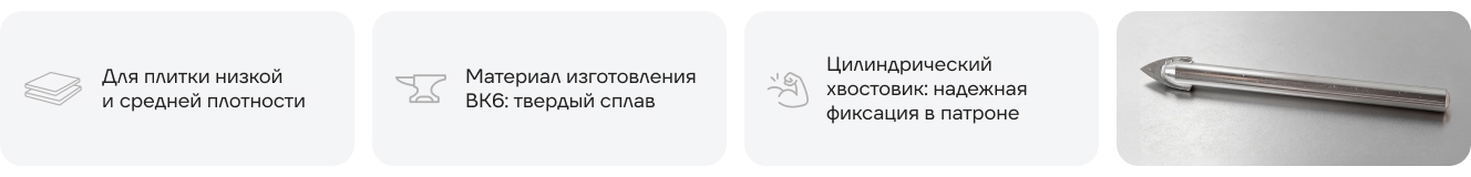 Сверло по кафелю и стеклу 10.0x80 мм, хв-к 7.0 мм, z-2, ВК6 ИНСТУЛС 00001845926
