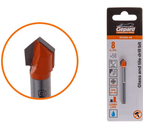 Сверло по кафелю/стеклу GEPARD 8x58 мм трехгр. хвостовик GP2082-08
