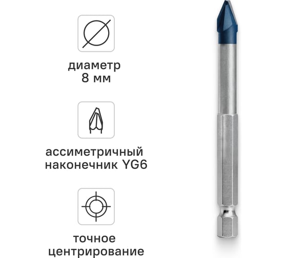Данное сверло предназначено для работы с керамогранитом, стеклом и керамикой.