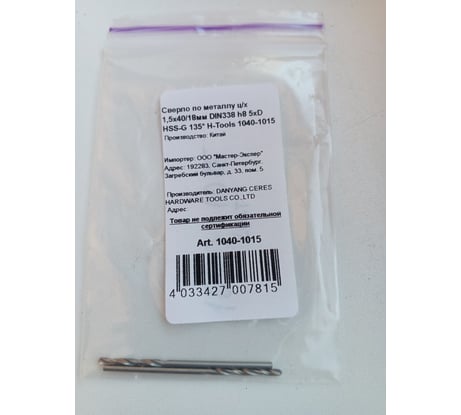 Сверло по металлу 2.0x49/24 мм DIN338 HSS-G H-Tools 1040-1020