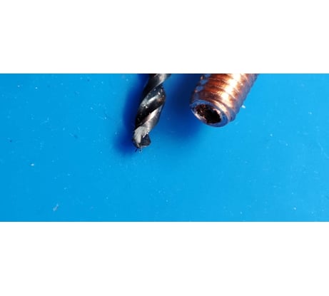 Сверло увязло в меди и сломалось. Даже не было ощущения что сверло сверлит, как будто просто трётся. Деньги на ветер.