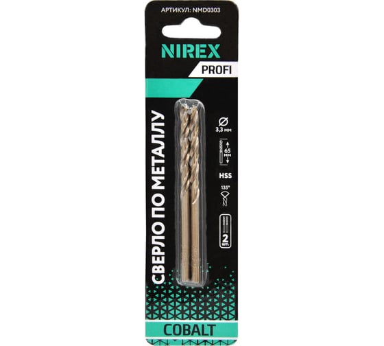Сверло Profi по металлу Cobalt NIREX 3,3x65 мм (2шт в упак) NMD0303