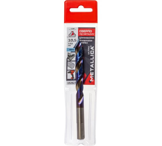 Сверло по металлу шлифованное METALLICA Ultra 10.5х133/87 мм, Р6М5-S ступенчатая заточка, 1 шт 192823