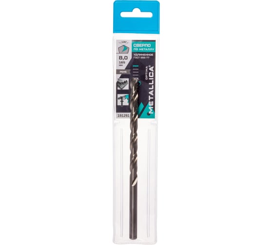 Сверло по металлу шлифованное удлиненное METALLICA Optima 8.0х165/109 мм, Р6М5-FGL, 1 шт 191291