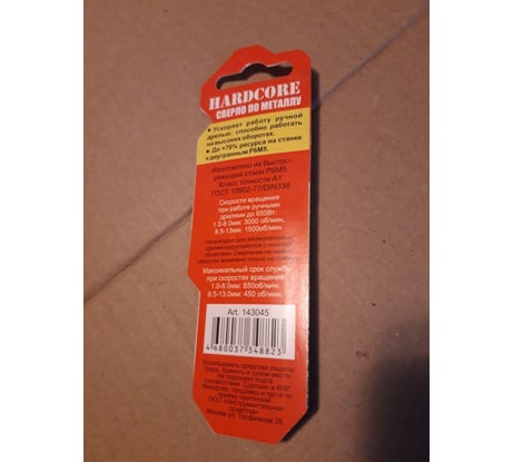 Технические характеристики сверла по металлу Hardcore 143048