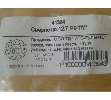 Вопросы и ответы о сверле ООО "ТМТ ГРУПП" цилиндрический хвостовик 12.7 мм Р9 41394