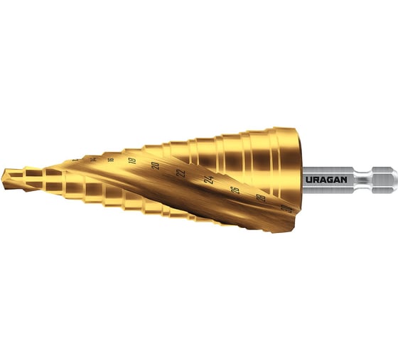 Сверло ступенчатое Uragan 6-30мм, 13 ступеней, винтовая спираль 29658-6-30-13