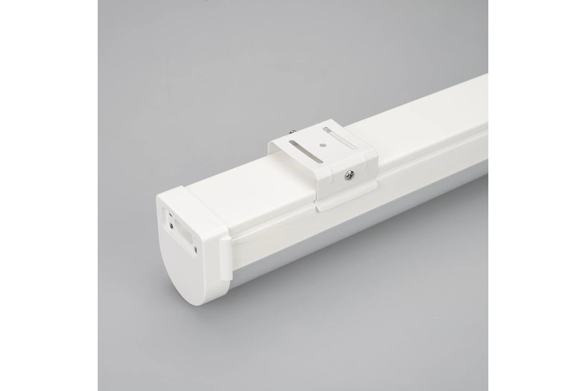 Накладной светильник 30 Вт. Корпус прямоугольный, белый пластик, влагозащищенный IP65. Размер LxWxH 1200x67x68мм. Питание AC 220-240В, драйвер встроенный. Коннектор питания 030992 поставляется отдельно. Скобы для накладного монтажа в комплекте. Максимальная мощность для подключения в линию 300 Вт. В комплекте одна заглушка и крепления для накладного монтажа. Коннектор питания в комплектацию не входит.