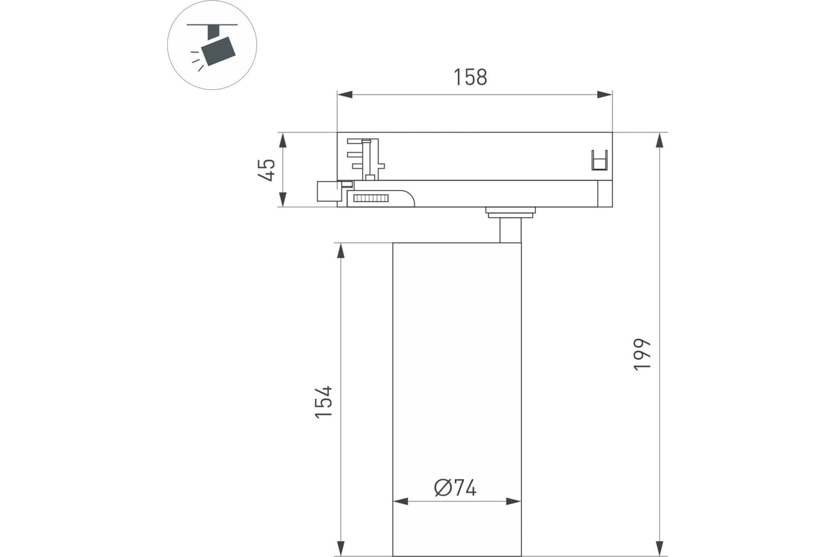 Светильник легко устанавливается в трехфазный трек серии LGD и подключается к сети переменного тока 230 В с помощью встроенного драйвера.