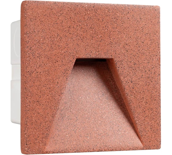 Встраиваемый светильник серии TIE с асимметричным светораспределением мощностью 3Вт, теплого цвета свечения (3000К) отличается нестандартным материалом корпуса. Корпус светильника изготовлен из бетона темно-красного цвета, рассеиватель надежно скрыт внутри корпуса, а монтажный бокс уже входит в комплект поставки.