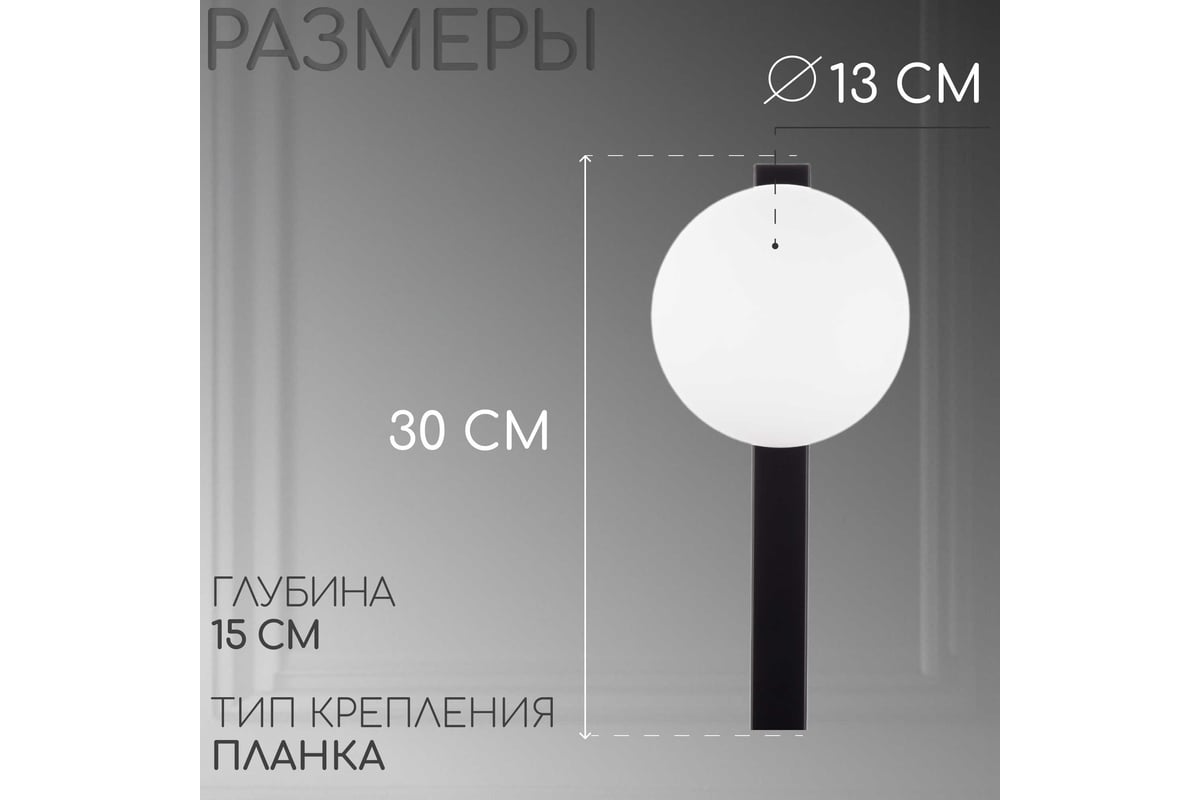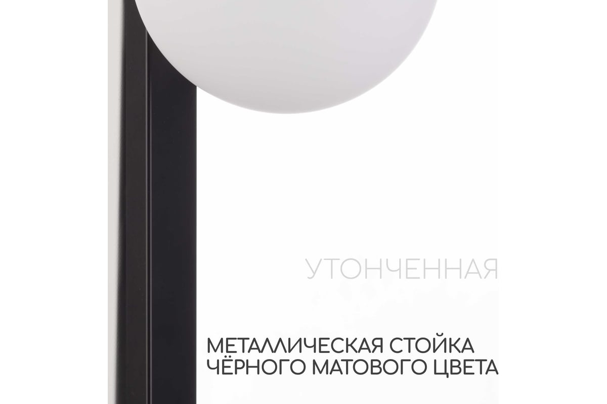 Перед вами современный изящный настенный светильник Citilux GLOB CL209411. Его утонченная металлическая стойка выполнена в стильном чёрном матовом цвете, а стеклянный матовый плафон в форме шара добавляет изделию легкости и воздушности.