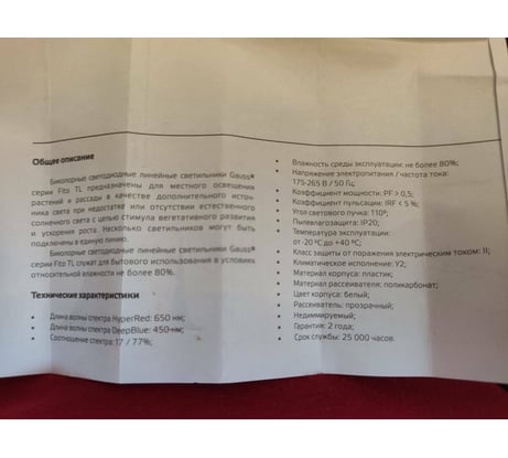 Отзывы о светильнике для растений GAUSS Fito 15W 460lm 175-265V IP20 1175х25х37мм, фиолетовый спектр LED 1/25 130411915