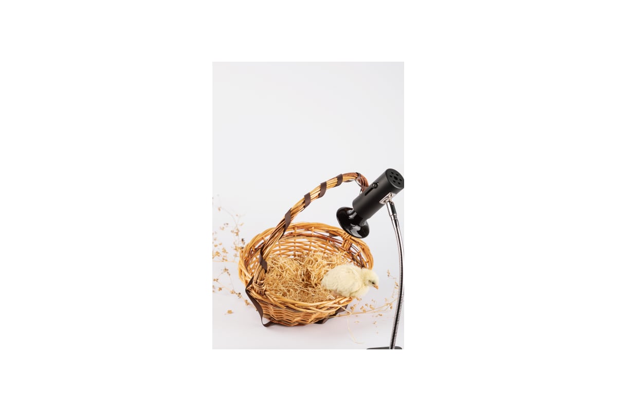 Светильник для террариумов и брудеров, эстетично вписывающийся в интерьер дома. Имеет множество преимуществ конструкции: на прищепке, с гибкой стойкой, поворотным плафоном на шарнире, выдвижным механизмом патрона, с термостойким проводом (1,5 метра), удобным кнопочным выключателем. Подходит для керамических и инфракрасных ламп, максимальная мощность до 250 Вт. Светильник позволяет регулировать направление света, создавая для животных максимально комфортные условия обитания.