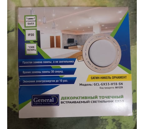 Отзывы о встраиваемом светильнике General Lighting Systems без подсветки GX53, 110х21мм, орнамент, сатин-никель, IP20 GCL-GX53-H18-SN 661229