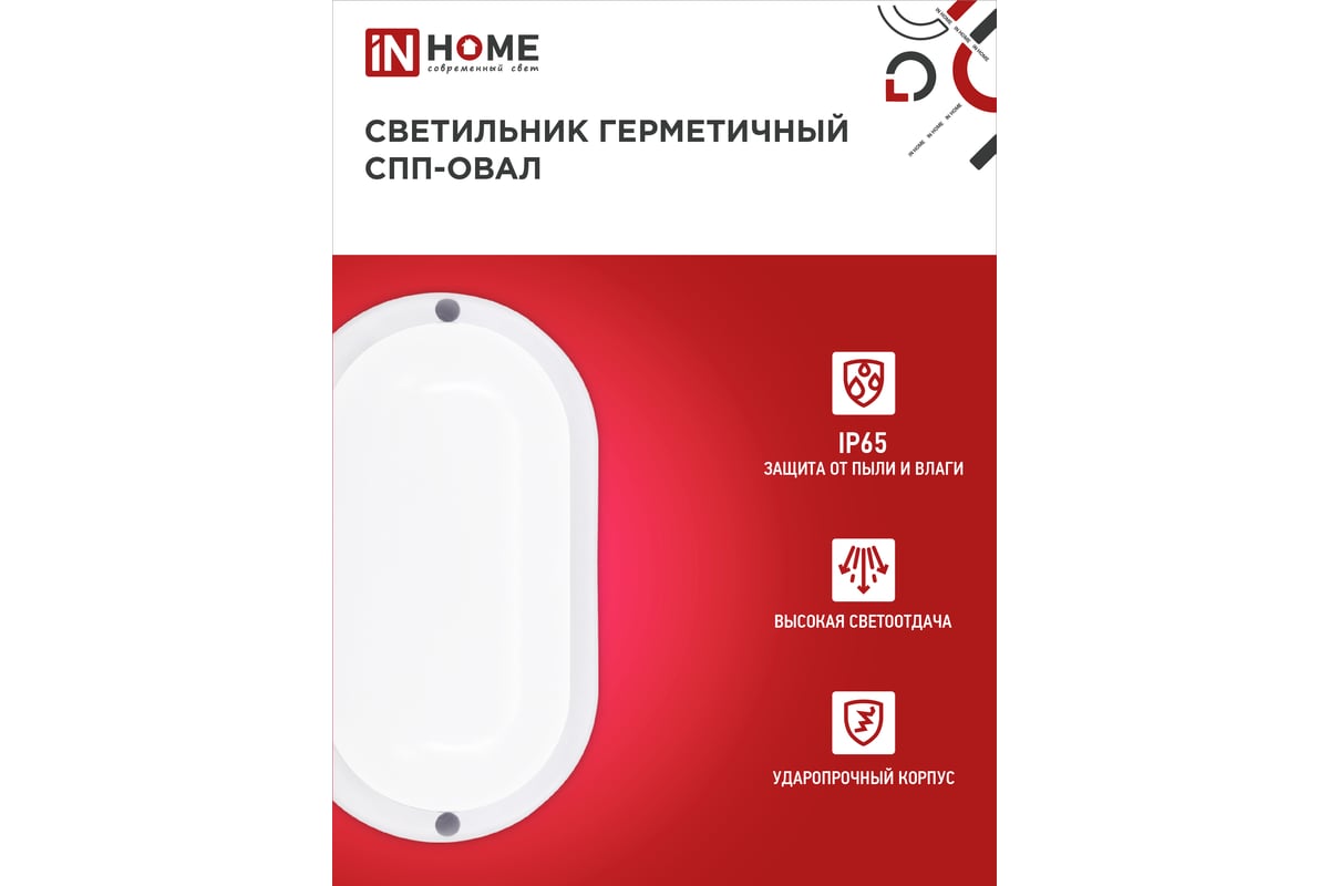 Вопросы и ответы о светильнике IN HOME 2065-овал сд герм спп 20вт 6500к 1800лм ip65 195x94мм 4690612049304