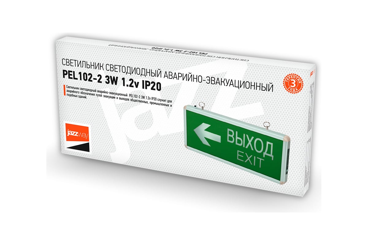 Технические характеристики Jazzway PEL 102-2 ВЫХОД-EXIT стрелка направления 3w 1.2v IP20 5033009