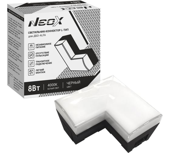 Светильник-коннектор Neox L-тип для ДБО-ALFA 8Вт 230В 4000К черный IP40 4690612060026