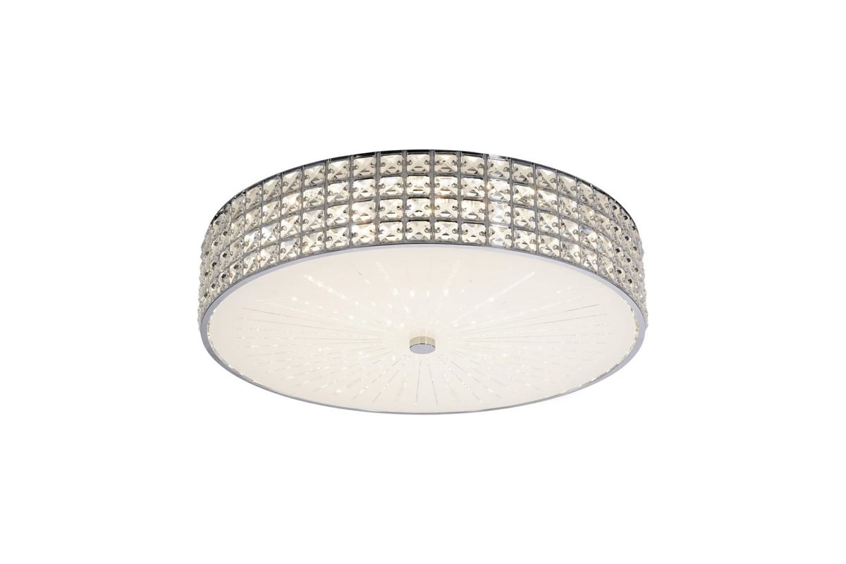 Хрустальная потолочная люстра Citilux Портал CL32415G1 выполнена в стиле современной классики. Корпус металлический, цвет глянцевый хром. Боковая часть светильника украшена хрустальными элементами с классической огранкой, в нижней части установлен стеклянный глянцевый рассеиватель с лучистым рисунком.