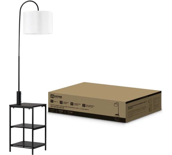Светильник напольный под лампу этажерка IN HOME ТНО 08КВ-Е27USB-WB USB-C белый абажур, черный корпус 4690612060392