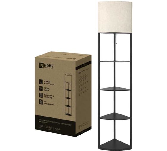 Светильник напольный под лампу этажерка угловая IN HOME ТНО 11С-Е27-NB бежевый абажур, черный корпус 4690612064512