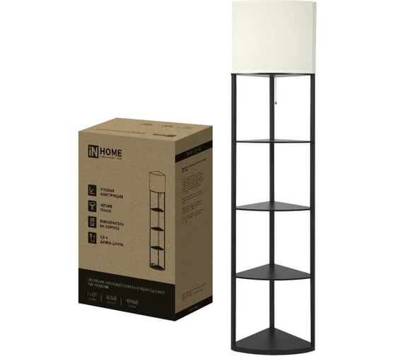 Светильник напольный под лампу этажерка угловая IN HOME ТНО 11С-Е27-WB белый абажур, черный корпус 4690612064505