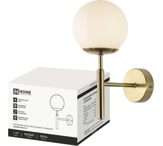Светильник настенный под лампу IN HOME AURORA ONE-G9-LT 1хG9 матовый плафон, латунный корпус 4690612063706