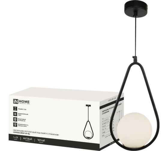 Светильник подвесной под лампу IN HOME AURORA DROP-G9-BL 1хG9 матовый плафон, черный корпус 4690612063690