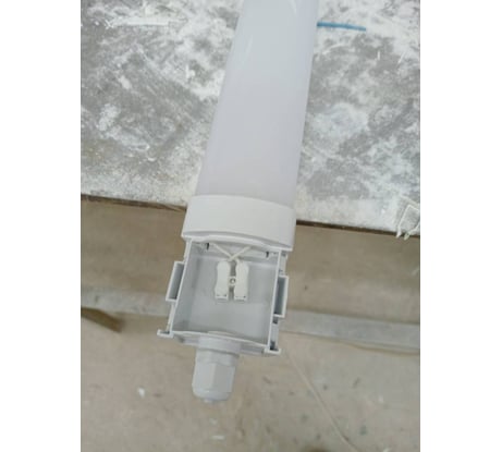 В карточке товара на фото светильник старой конструкции, в действительности светильники приходят немного другие. Это не вина магазина, а производителя. Производитель не удосужился изменить описание на этикетке светильника. Раньше эти светильники были с монтажной коробкой, в которой был клемник и сальник для соединения светильников "цепочкой", теперь этого нет. Более того, на старых моделях были блоки питания более габаритные, провод подключения большего сечения (на глазок - 0,5мм²). Сейчас блок питания в два раза меньше, провод намного тоньше (хорошо, если 0,35мм²).