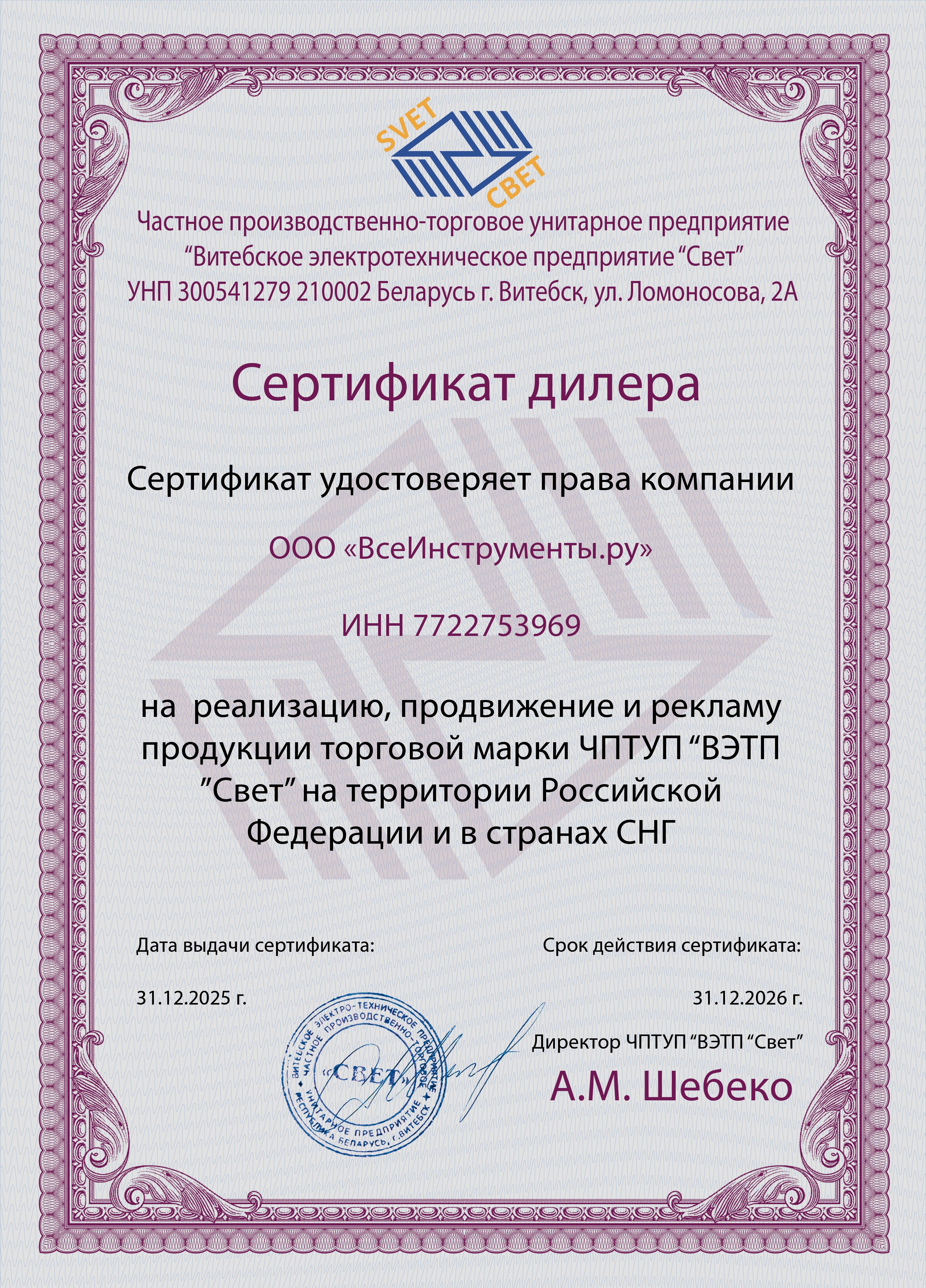 на товары SVET