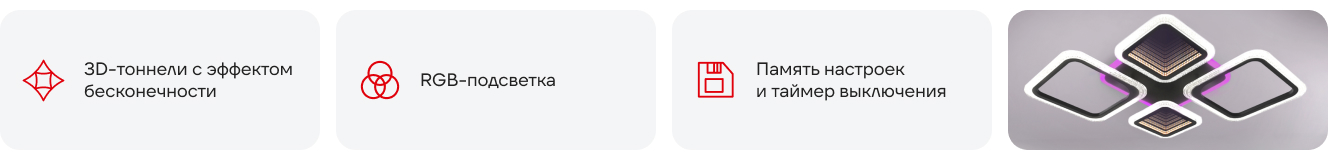 Светильник серии ELEGANT c эффектом "bubble glass", выполненный в прозрачном акриле с эффектом пузырьков, создает легкое и невесомое пространство, RGB подсветка позволяет менять мягкое естественное освещение на контрастное цветное, а 3D тоннели создают эффект бесконечности.