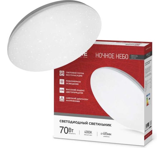 Светильник светодиодный IN HOME серии DECO НОЧНОЕ НЕБО 70Вт 230В 4000К 6300Лм 485х68мм 4690612063386