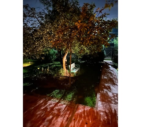 Яркий 5 режимный садовый светильник, с 72 светодиодами, выступает больше как начальный светодиодный прожектор, на Li-Ion аккумуляторе и с полноценной солнечной батареей, снабжён фотоэлементом, хотя это и не указано в инструкции, он включается автоматически в тёмное время суток и выключается с наступлением рассвета. Запоминает выбранный режим свечения. Аккумулятор похоже соответствует заявленной ёмкости, светимости в режиме 'тусклый тёплый свет' его хватает на всю ночь. Колышек для втыкания в грунт прочный и сама конструкция выглядит достаточно надёжно. С возможностью поворота в пространстве как части со светодиодами, так и солнечной панели.