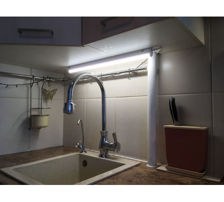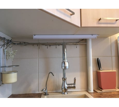 Прекрасный светильник для освещения пространства над мойкой. Достаточно мощный при небольшом размере.