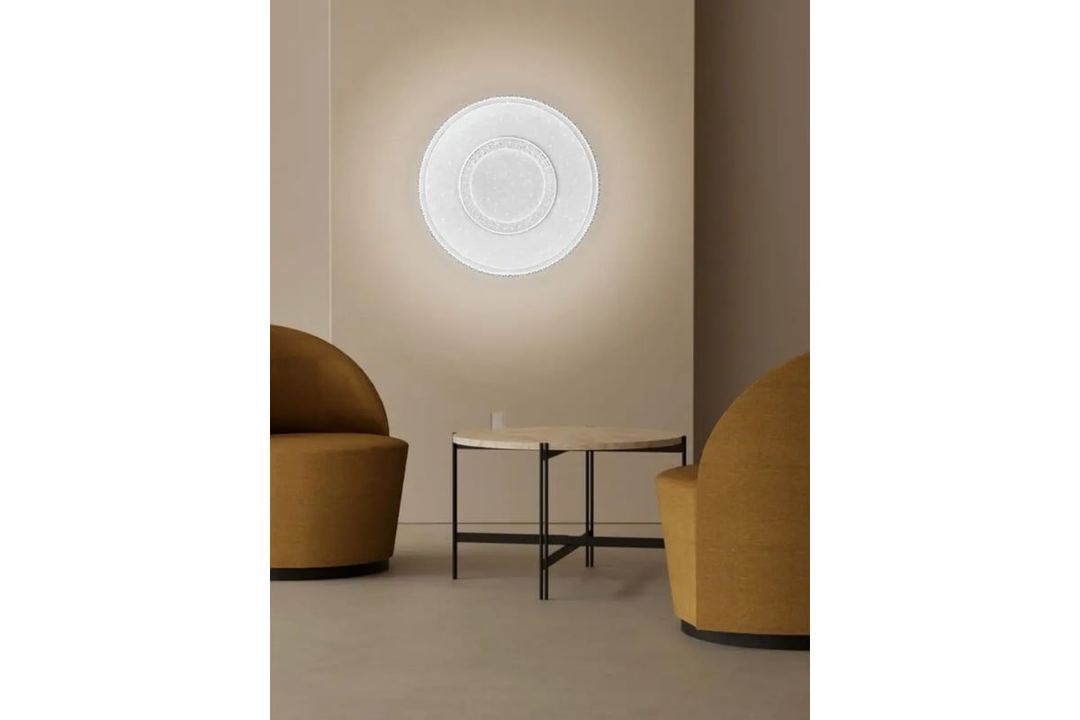 В комплект входит пульт управления, который позволяет изменять яркость света, выбирать различные режимы свечения и создавать динамические эффекты. ПДУ работает на расстоянии до 3 метров от светильника, что удобно для управления освещением из любой точки помещения.