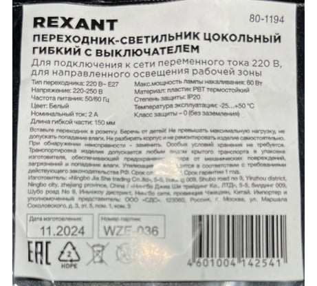 Отзывы о цокольном гибком светильнике в розетку REXANT Е27 150 мм с выключателем 80-1194