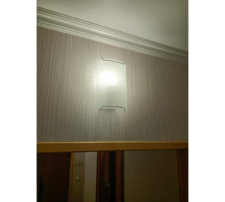 Светильник упакован в коробку. Структура плафона (стекла) - матовое с пропускной способностью примерно 80%, на которое нанесено мелкое покрытие типа прерывистой тонкой "зебры", белой непрозрачной краской под углом 45 градусов. Видимо в представлении производителя - это Волна. Покупал 5 светильников и только на одном снизу посередине имеется по краю маленький скол. Стекло удерживается двумя пружинами (вверх/низ), покрытых никелем. Пружины достаточно мощные и если при вынимании плафона сорвутся пальцы с пружины, то при ударе последняя неизбежно нанесет скол на стекле. Пружины имеют трапециевидную форму, загнуты несимметрично левая и правая сторона. Вот по этой причине требуется вынуть плафон, вытащить пружины, выгнуть их симметрично и установить все обратно. Патрон керамический, крепление проводов под винты (проверьте их наличие). На патроне имеются 2 отверстия под крепеж. Одно из них использовано по назначению, из другого торчит во внутрь патрона конец винта, к которому крепится снаружи провод заземления. По сути патрон удерживается одним винтом, второй только лишь не даёт патрону повернуться вокруг первого винта. На мой взгляд, при замене лампы можно выломать крепежных площадку патрона, если немного превысить усилие закручивания. Корпус светильника покрыт белой эмалью, на вид порошковой краской. Бра своих денег стоит, я ожидал худшего. В принципе, наверно возможно смыть краску, если кого-то не устраивает рисунок или надо, чтобы бра светило поярче.